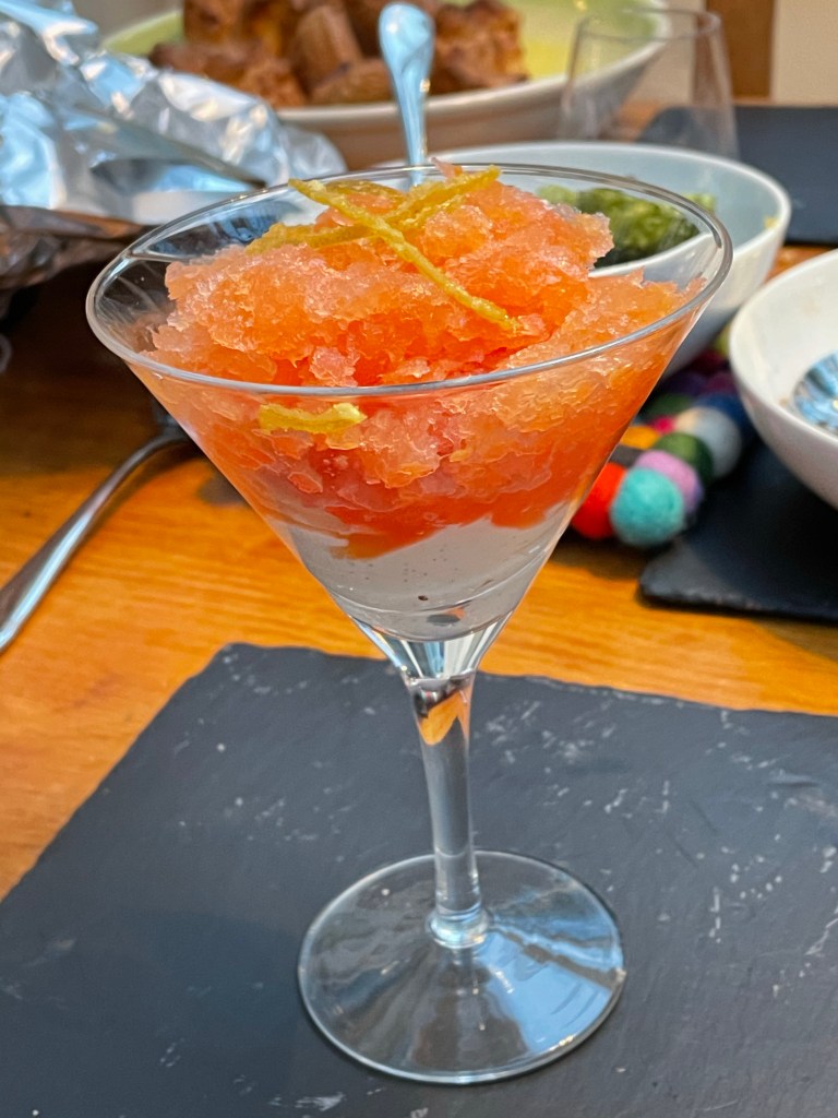Blood Orange Granita with Creme Chantilly and Candid Lime – a wonderfully refreshing desert