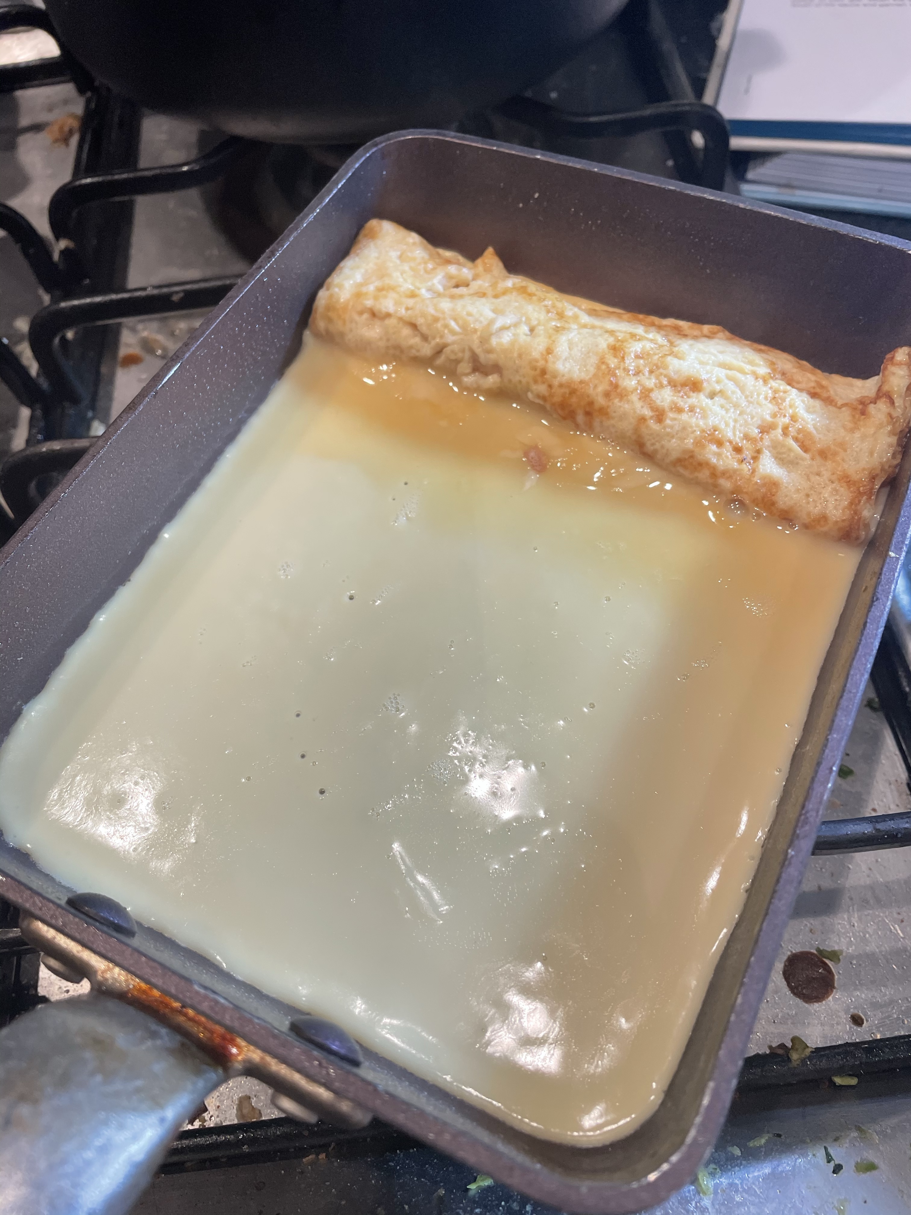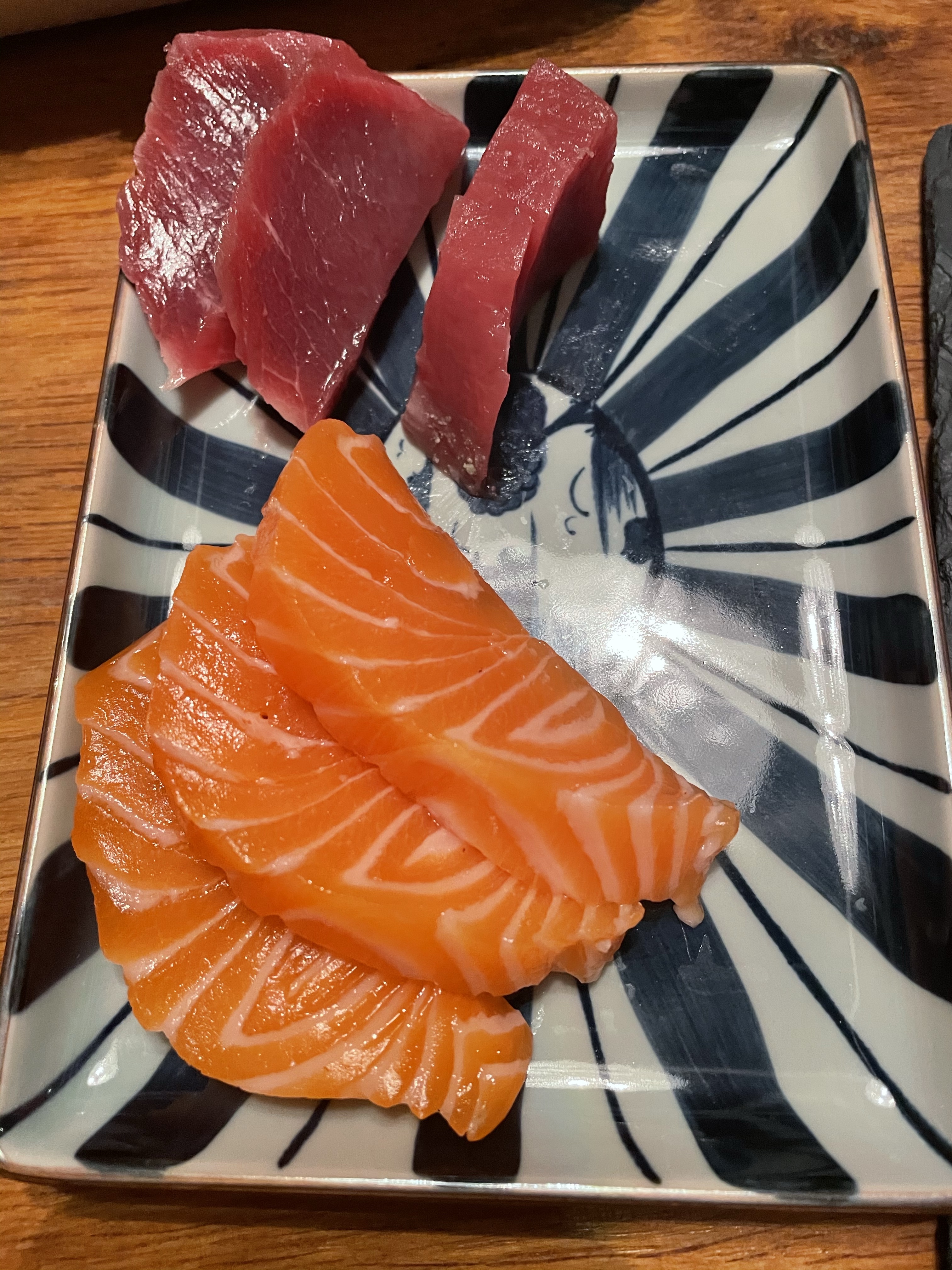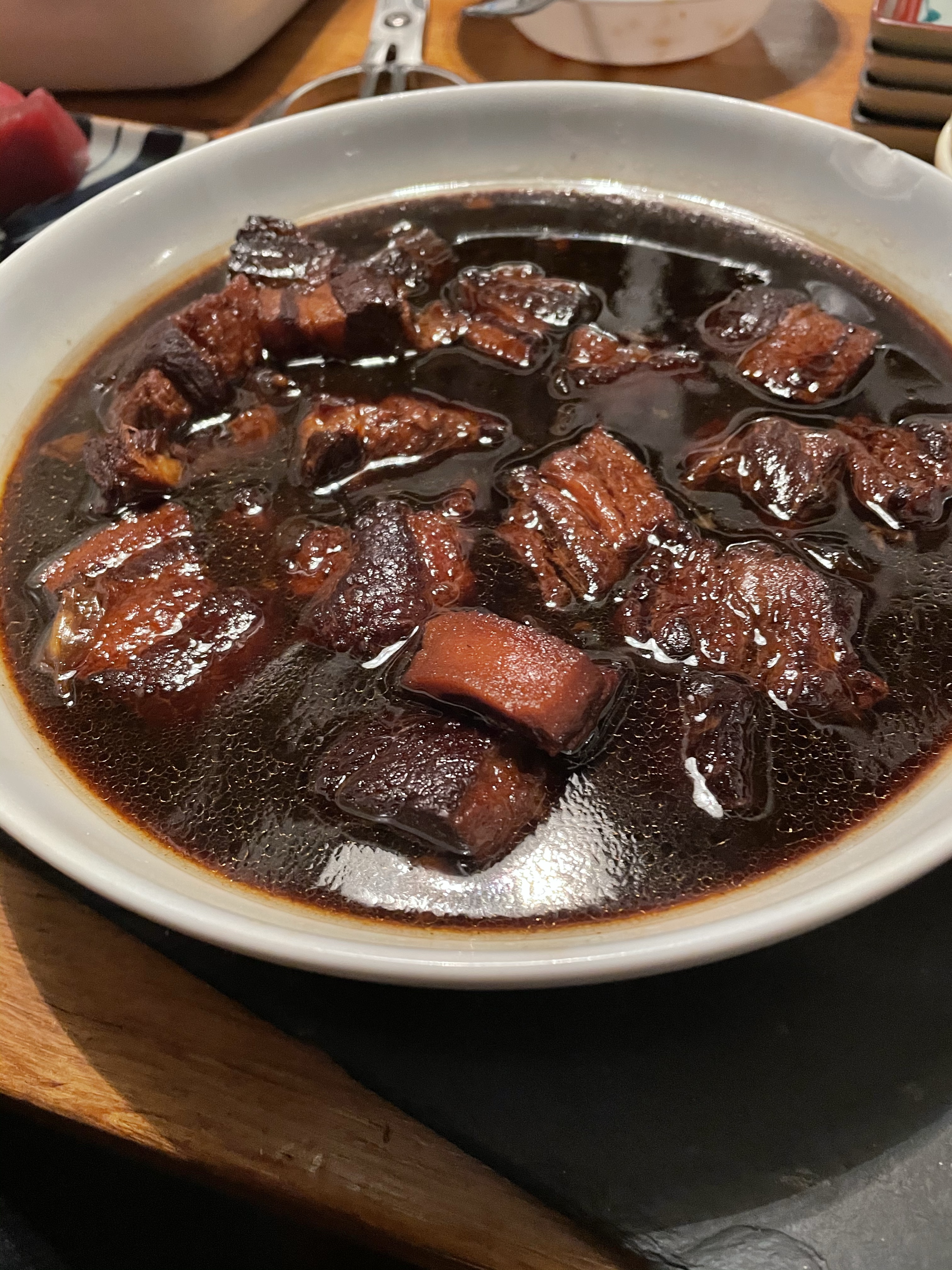 This week’s book was The Book of Sushi. This isn’t really a cookbook per se but more of a guide to sushi. The book talks about the history, the technique, the different types, different accompaniments and is a wonderful book that we’ve had for many years. There are, however, only two recipes in the book: sushi rice and sushi omelette (Tamagoyaki)- so we did both of those and augmented with recipes from Tim Anderson’s Japaneasy. The image you see before you shows our daughter’s Nigiri sushi (Salmon, Tuna and Prawns), Tamagoyaki Sushi, California rolls, Sashimi, Chicken and Spring Onion Yakitori, Karaage chicken, and Sweet soy and stout-braised pork belly. All washed down with a little Sake and Asahi Beer. It was a fun evening. Next week we head back to Italy.