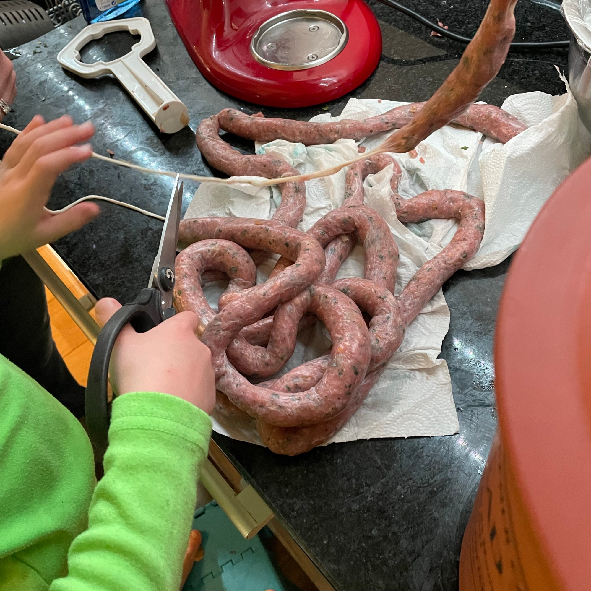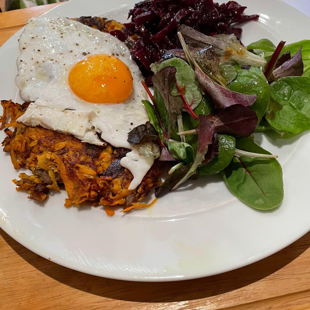 Now Monday was a bank holiday, and our son had suggested making sausages! We gave it a go, and they were excellent – we all had a lot of fun making them. We served them with mash and leftover red cabbage. We will be making sausages again! Tuesday, we had the rather lovely Duck, and Sweet potato Rosti followed by a Double chocolate parfait which we made the day before. The Rosti was excellent – the parfait was pretty tasty too.