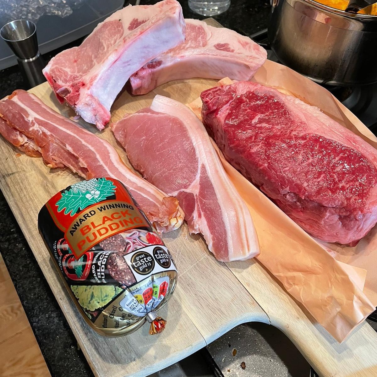 We served a lovely recipe of Braised Chicken legs with honey and five-spice with a fantastic parsnip mash. The final dish of the week was a “mixed grill” to finish the last of the sausages, with steak, Iberico chops, bacon, black pudding and chips. That was quite a week. Gordon is up again next week with our daughter choosing the recipes.