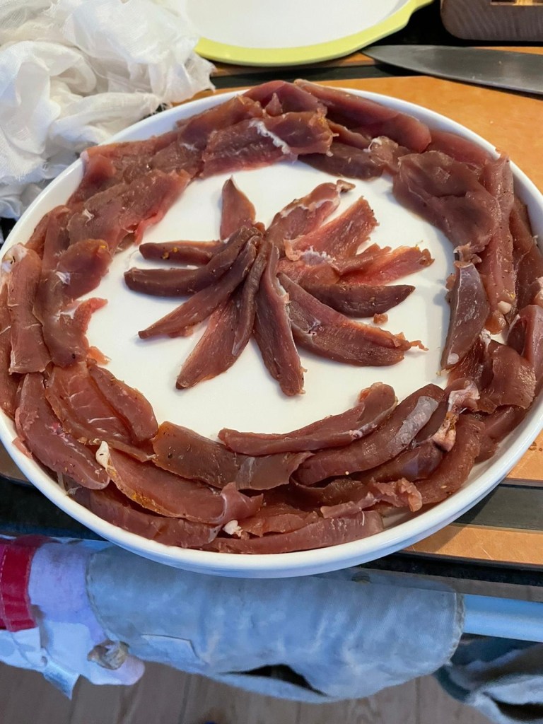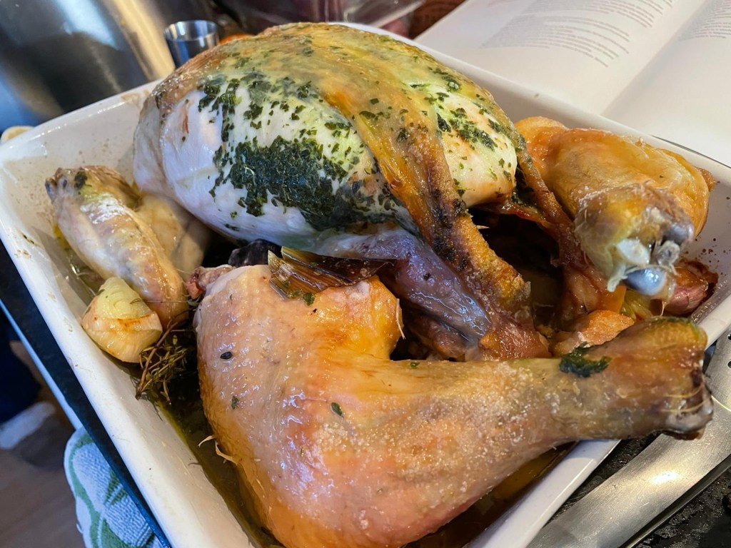 This week’s cookbook was another from Gordon Ramsay – Gordon Ramsay’s Secrets. Our daughter chose the recipes this week, and boy did she go for it – one of the recipes took all week – Duck Bresaola! However, it was a bit of a mixed bag week; some things worked well, others not so much. That said, even the things that didn’t quite work did show some promise. We started with the extravagant Salad of Truffle-dressed Scallops, which was good (albeit the truffles were overpowering). Up next was a rather lovely Roasted Tomato Soup, which was incredibly creamy without a hint of cream anywhere. Sunday dinner was a Roast Chicken with Cardamom Carrots which we served with Pommes Dauphinoise and cabbage. The chicken was done as a crown and separate legs – not a technique we’ve done before. The breasts were packed with herb butter. We have to say that herb butter made a massive difference to the tastiness of the breasts, which can sometimes be a bit uninspiring.