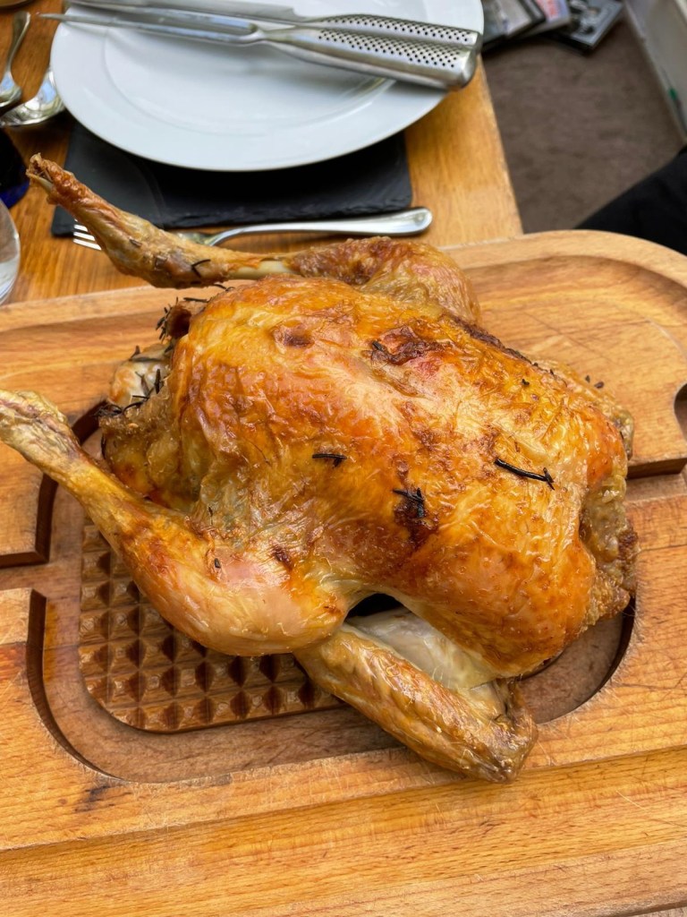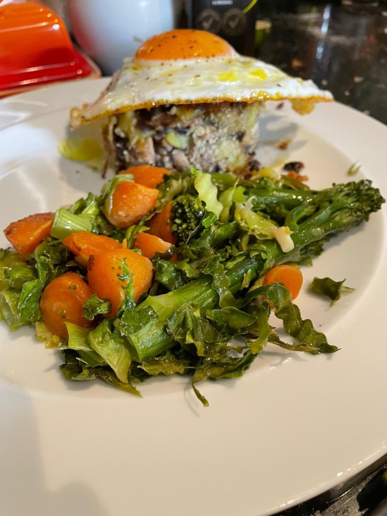 This week’s cookbook was from Mark Hix – Oyster and Chop House. This was a restaurant we used to go to from time to time many years ago. It’s also the restaurant where Keith Floyd had his last lunch. Sadly, Mark has had to close his London restaurants, so the Oyster and Chop House, Hix Soho and Tramshed are no more. On Sunday, we did Roast Chicken with a chicken liver stuffing that was unusual but really tasty; we followed this with a rather lovely chocolate mouse – something I think we’ll definitely make again. This week’s winning dish was Duck Hash – think corned beef hash with confit duck instead of corned beef, topped with a fried duck’s egg. Another recipe this week was a pretty good potato salad with bacon and spring onions – which we served as an accompaniment for a pan-fried piece of salmon. We also made a Chop House butter for slicing and putting on top of a steak. It’s herb butter flavoured with HP sauce, Henderson’s relish, Gentleman’s Relish, red wine, onions and garlic – really looking forward to that when we next have steak! We also have the ingredients for a Hix Fennel salad next week, which we’ll try with Salmon or Cod en Papillote! Hix’s week was pretty good all in all. Next week we head down a decidedly sweet route with James Martin.