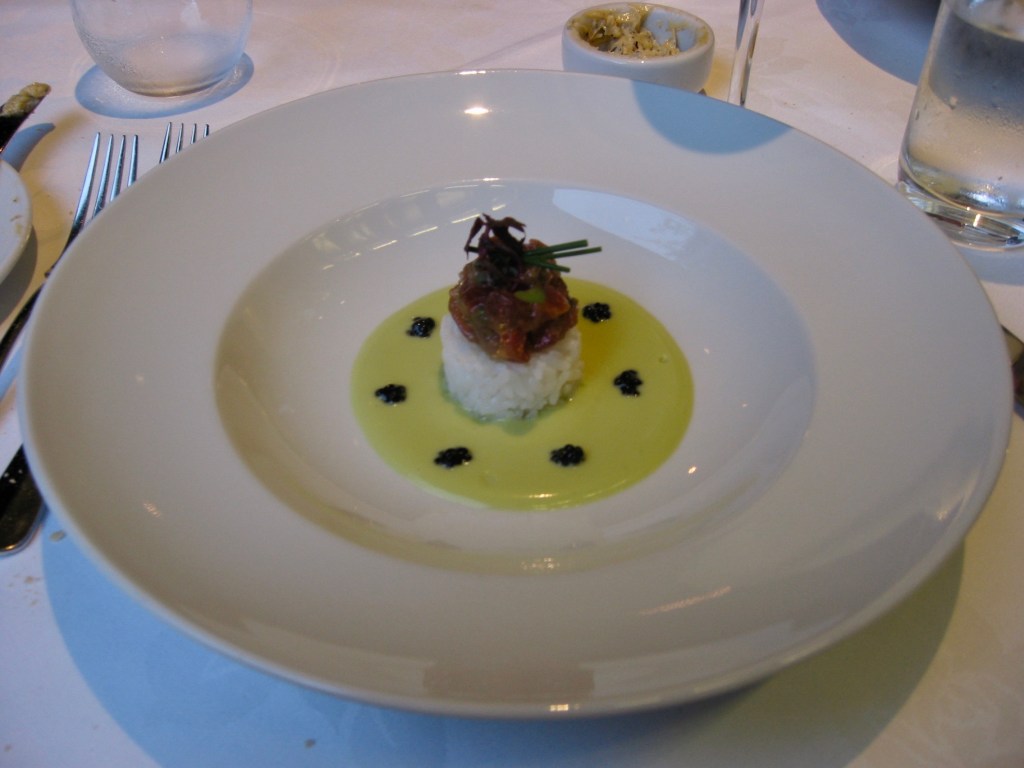 This week’s book was a book we bought after a fantastic meal at Tetsuya’s in Sydney. One of the best meals of our lives, an exceptional tasting menu around a beautiful Japanese garden in the heart of Sydney. We cooked just a couple of recipes from this book this week. The first was Grilled Breast of Duck with Apple and Ginger Dipping Sauce. This is a great little recipe that we’ve done before is straightforward but beautiful and looks amazing. We followed this with the rather lovely Double Cooked Deboned Spatchcock with Bread Sauce. This recipe had many components. None of them was complex in their own right, but there was a lot to get together simultaneously. The end result looked great in my view and was truly delicious. That said we don’t seem to have images of what we cooked so I’ve included some images of the food when we visited the restaurant in 2006. We remain down under next week with one of the legends of New Zealand cooking.