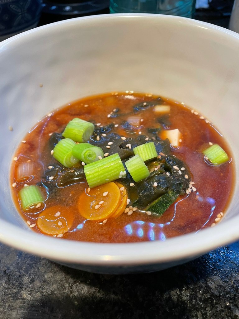 More Playing catch up, this week was Japaneasy by Tim Anderson. Tim won Masterchef a few years ago and we have a couple of his cookbooks. Japaneasy is a cracking book. It turned out to be quite a Japanese food Saturday with us heading over to Westfield shopping centre where there is the fantastic Japan Centre owned Ichiba Japanese supermarket. We had a lovely lunch there, bought ingredients and in the evening, made the wonderful Chicken Yakitori (Chicken on skewers), Chicken Karage (Japanese fried chicken) and Egg fried rice. The Karage was surprisingly easy to do and was a wonderful flavour. Later in the week, we did Ramen with Scallops, Bacon and Eggs. We bought frozen scallops from the Ichiba, and they were great in this recipe; it was a fantastic Ramen and we’ll definitely do it again. Later in the week, we had a night of “The best miso Soup” recipe which was really easy and our first use of Tofu at home, a great little recipe. To round off the week was Tempura of prawns, cod, courgettes, mushrooms and onions. Wow. We both thought Tempura would be a bit of a nightmare to cook – not so at all. It was straightforward and tasty, with a great little dipping sauce.