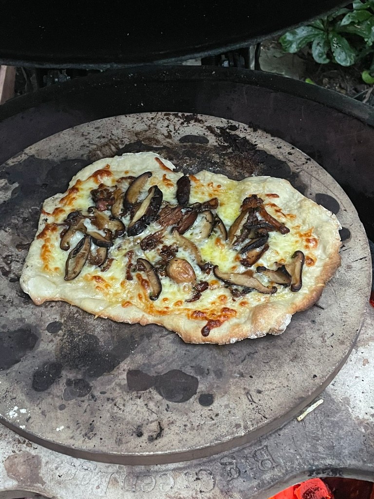 Sunday night has become pizza night in our house and since the book had Roasted Garlic and Wild Mushroom Pizza by Wolfgang Puck, we gave that a try. The base was a bit wet and sticky – definitely not as good as some of the other bases we make but the topping was out of this world. Lou said it was the best pizza she’s ever eaten (high praise indeed).