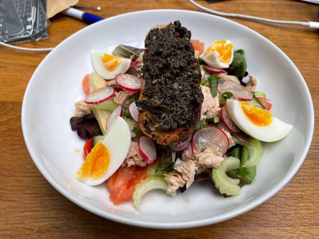 Later in the week was Riviera Salad by Alan Ducasse. Think a tuna nicoise really but beautiful combinations of artichokes, tuna, anchovies, olive tapenade, tomatoes, celery. It was a memorable salad. We had to adjust the recipe slightly as we couldn’t get purple artichokes but all in all a cracking little dish.