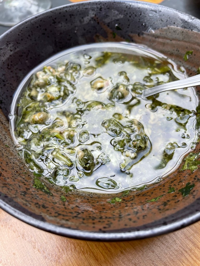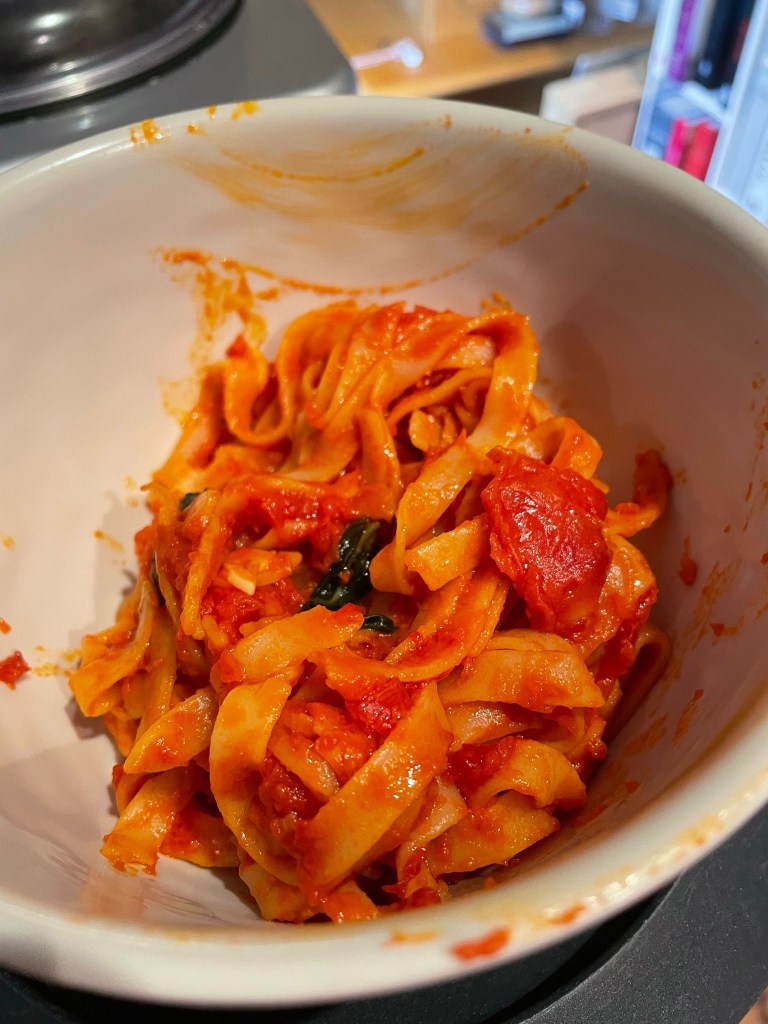 Next up was an excellent Tagliatelle with Tomato and Basil. A few years ago, we regularly ate at Cafe Caldessi in Marylebone, a lovely Italian brasserie and restaurant (with a fab cookery school too) and often had their pasta with tomato sauce. This river cafe recipe came as close to that recipe as we’ve tasted. It was a belter.