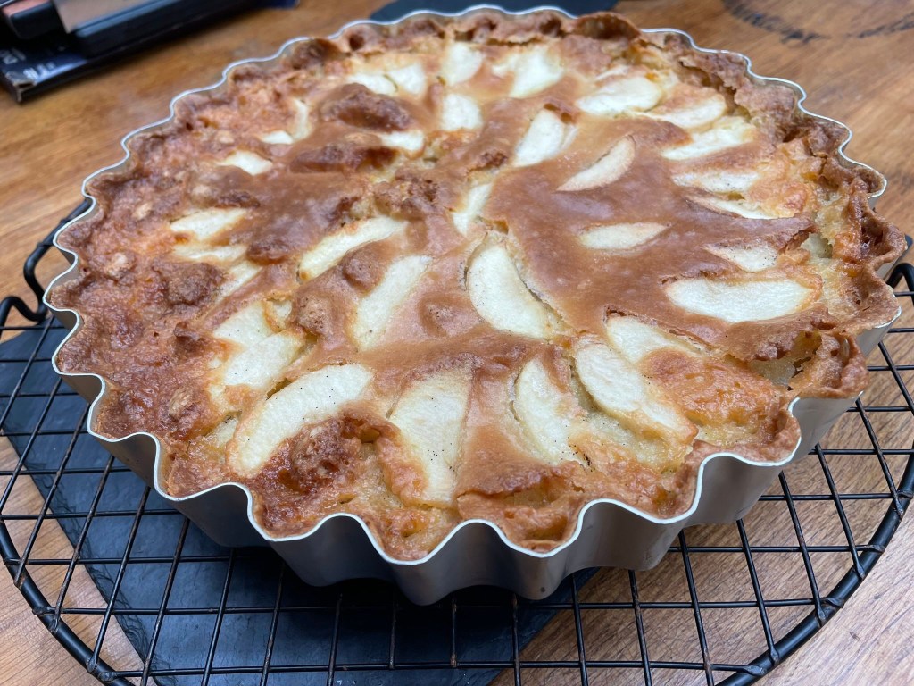 This week’s book was: River Cafe Two Easy by Rose Gray and Ruth Rogers. We had some pescatarians with us for Sunday lunch, so we tried out something which turned out to be a rather fantastic dish; a whole side of salmon grilled on the barbecue. We served it with Roast celeriac, squash & fennel served with potatoes and greens. We had the rather lovely Lemon Apple Cake for dessert – a bit like a lemony, appley clafoutis.