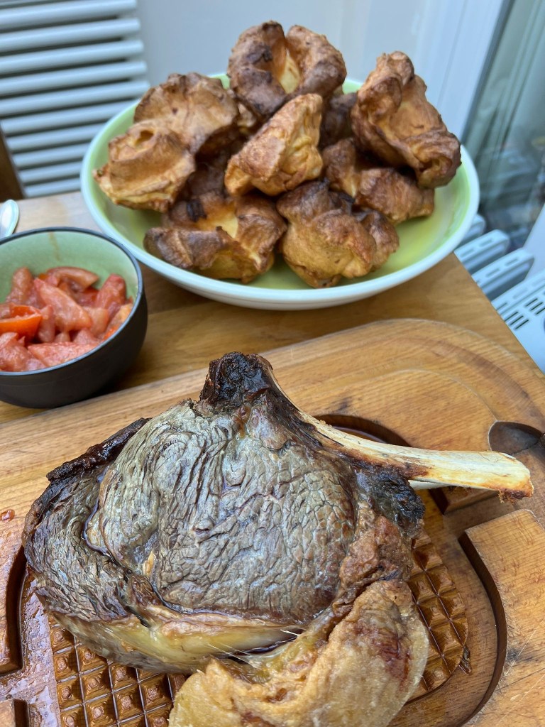 My mum used to do little puddings, sometimes individual ones about 10cm across, sometimes, she calls popovers, cooked in a muffin or bun tin. These ten or so perfect little puddings brought to the table as a pile are mainly how we do Yorkshires at home. We’ve come across Yorkshire puddings worldwide, with particularly memorable ones at The Wayfare Tavern in San Francisco.