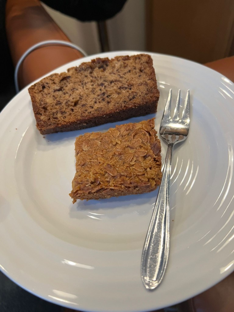 Next up was Sophie’s banana bread and her take on flapjack. The banana bread was ok, nothing really to write home about – the Ginger and White one is better. Sophie’s Flapjacks have some molasses in them, making for a darker coloured flapjack and a more black treacle-like taste. The flapjacks were good, but the addition of molasses was a really nice touch – something we’ll add to our go-to recipe (a recipe from Stephen Jackson, who used to be the chef at one of our favourite restaurants in Huddersfield, the now very much missed Weaver’s Shed).