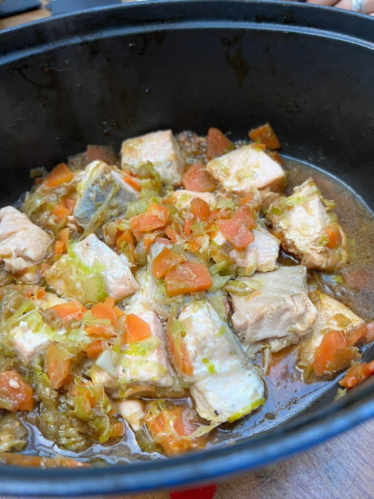 This week our book was The Wagamama Cookbook by Hugo Arnold. This is the cookbook of the recipes from the restaurant chain. We cooked Ebi Katsu and Salmon Hot Pot, which were easy to do and tasty. The Ebi Katsu had a stellar Katsu sauce which our son made and was very Moorish. The Salmon Hot Pot is one of the only recipes in the book that you can’t eat in the restaurant, so we picked it! It was similar to a Monica Galetti soy chicken dish that we often do with salmon as an alternative to chicken. This Wagamama dish has some lovely diced vegetables in the mix and was delicious. The #Wagamama cookbook was good. Next week we’re back with Gordon Ramsay taking it easy.