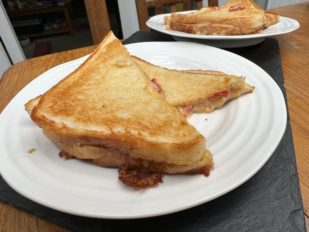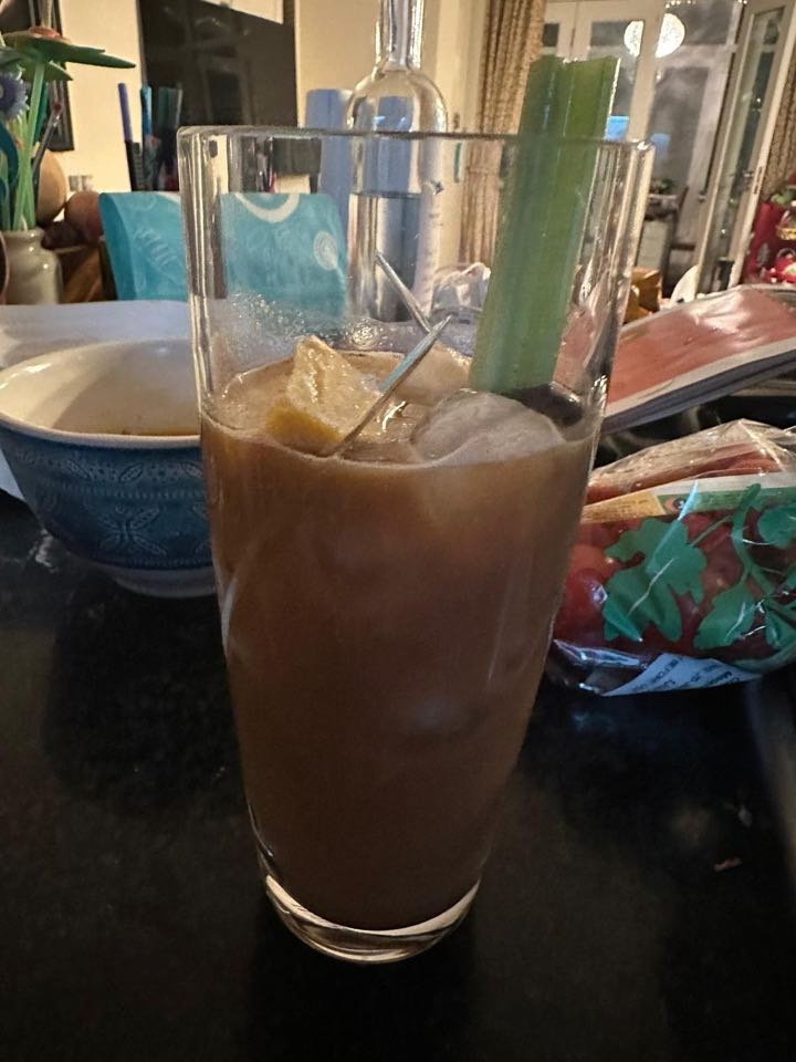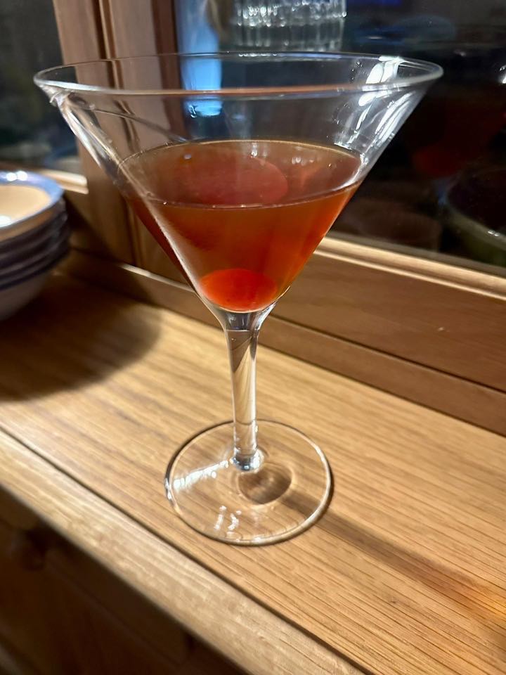 More cocktails this week, Winter Cocktails by Maria del Mar Sacasa. This book has hot toddies, punches for parties, some classic cocktails and a few recipes. We cooked the Pimenton Cheese Toasties. These consisted of grated cheese, spices, chopped roasted peppers, Worcestershire sauce, and cream cheese, spread between two slices of white bread, outsides buttered and baked between two baking sheets. This was a way to do a grilled cheese sandwich that I’d never done before – it worked really well, and the toasties made a lovely weekday lunch. Friday night was a lovely night to try a cocktail, and we tried a Manhattan. It should be rye whisky, but the closest we had was some Jack Daniels, with Angostura bitters, red vermouth (the same brand as in last week’s martini) and a maraschino cherry. It was delicious! Finally, we made our own tomato juice – blitz cherry tomatoes, sugar, salt, lemon juice, horseradish, and Worcestershire sauce and strain through a sieve to get an amazingly tasty juice that was delicious on its own and made an incredible Bloody Mary! Next week its a book of Japanese Bento boxes which should be fun.