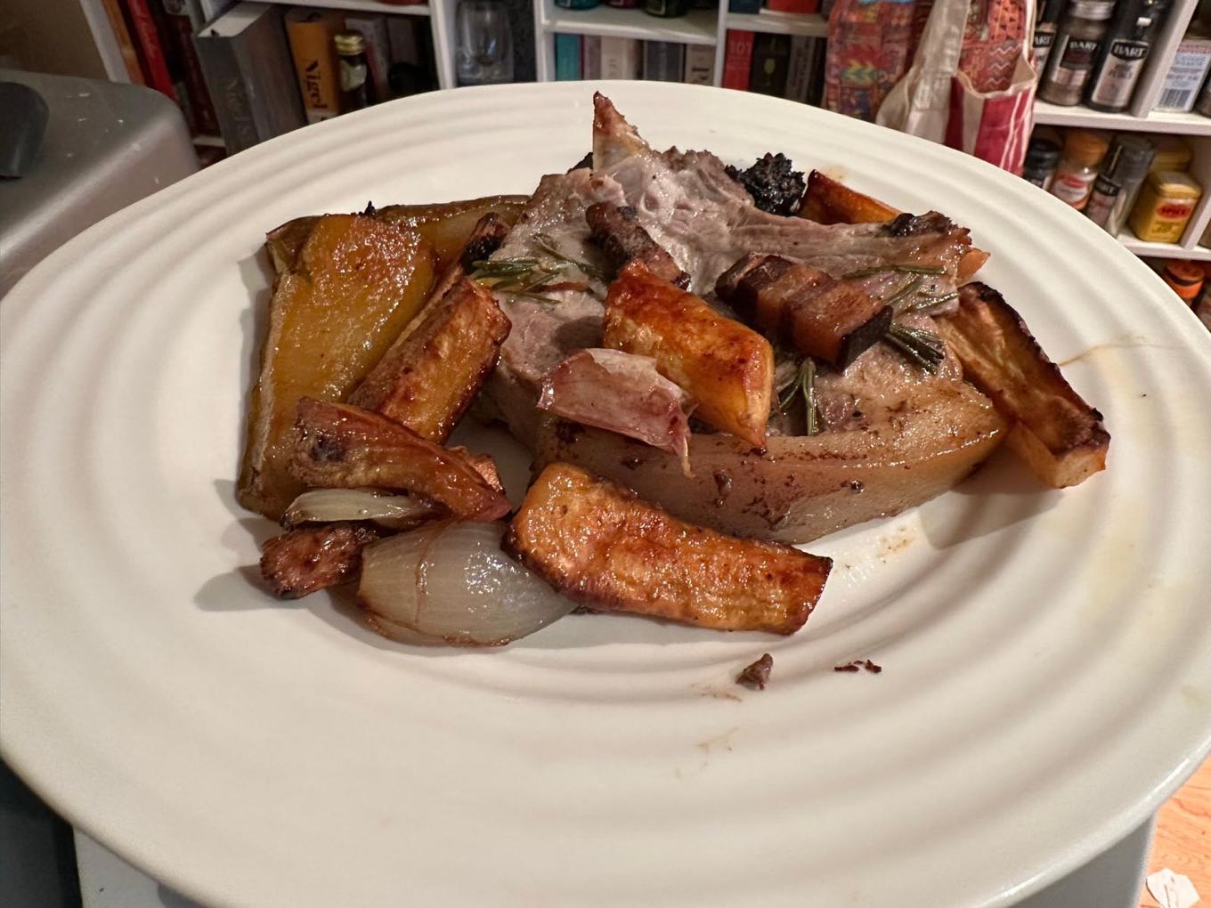 This week was The Borough Market Cookbook by Borough Market with Ed Smith. Borough market is a food market in London and is a foodie paradise. There are stalls of every epicurean option you could ever want whether to buy there and cook at home or loads of stalls serving everything from fish and chips to Raclette on potatoes. The book covers the life of the market, the people who are there and their recipes. It has a truly brilliant Yorkshire pudding recipe which has become our go-to option. The week started with the rather wonderful Parsnip, Pork and Pear Traybake. We added some carrots into the mix as our kids don’t like parsnips. This was delicious and the pears really lifted the dish. Next up was