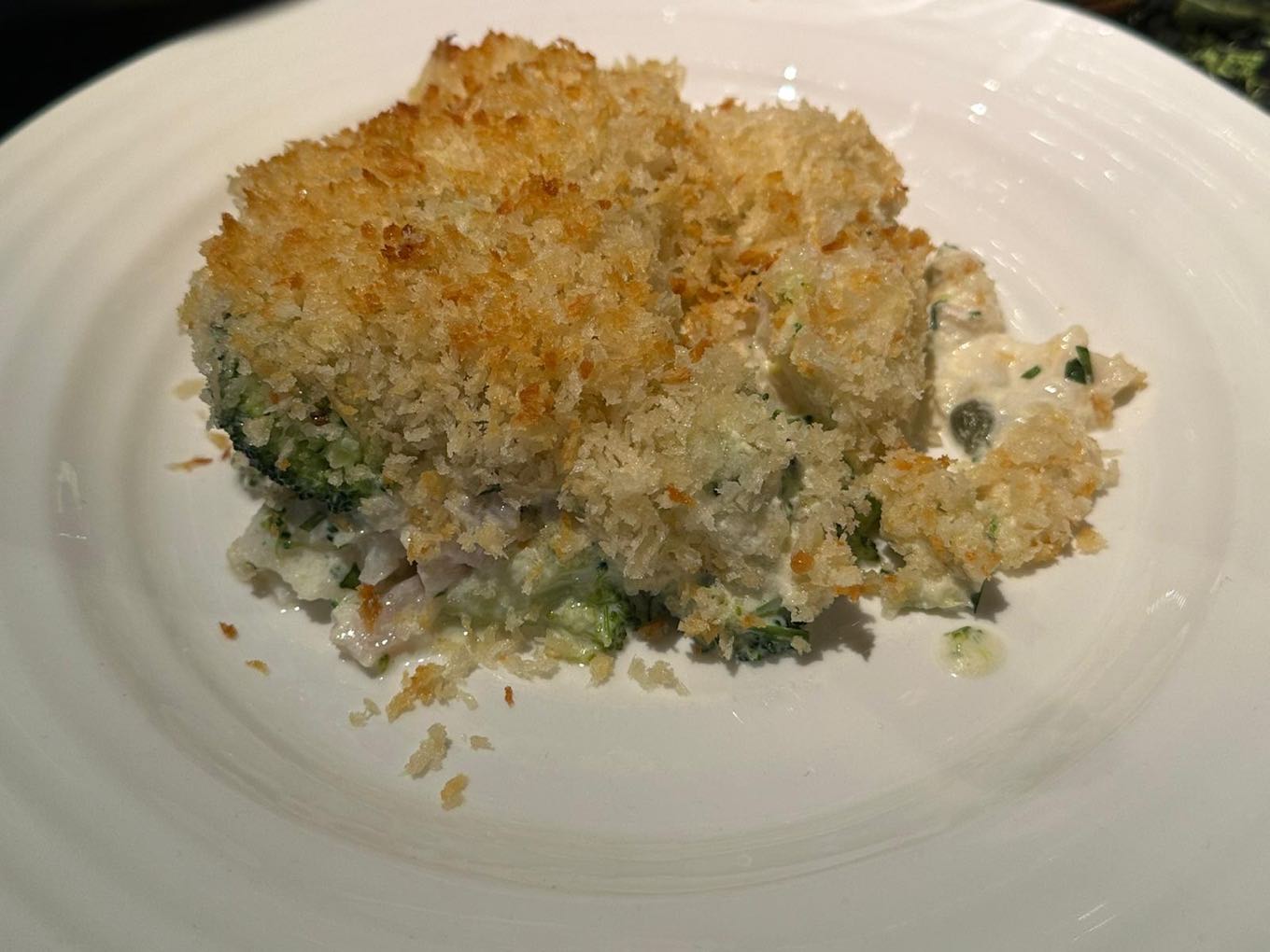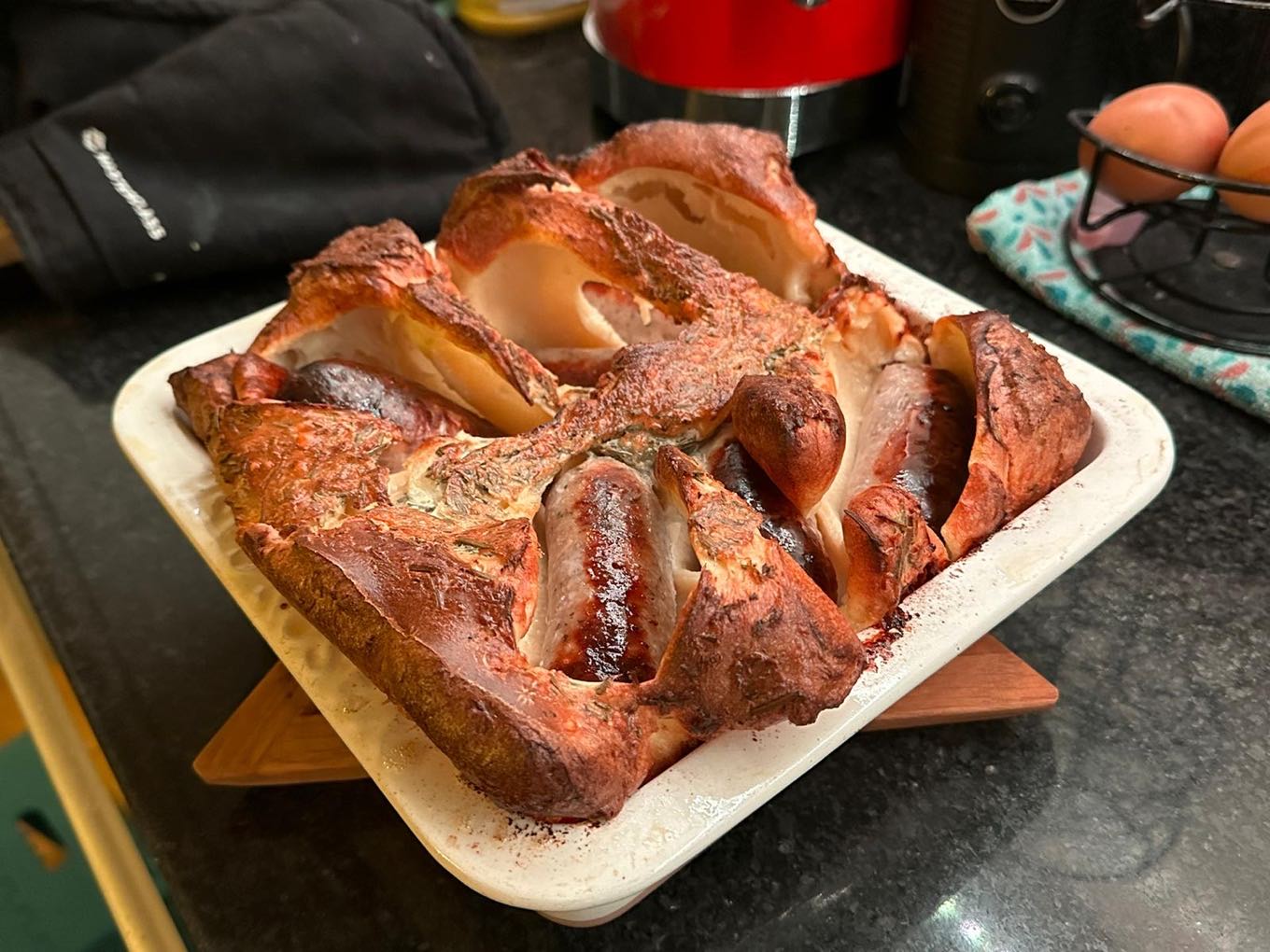 Cod, Smoked Haddock and Romanesco Bake (we substituted Romanesco with broccoli). This was a fantastic mid-week supper and one that we’ll do again. Last up was Toad in the Hole with Lardon Gravy which was a lovely change and super tasty.