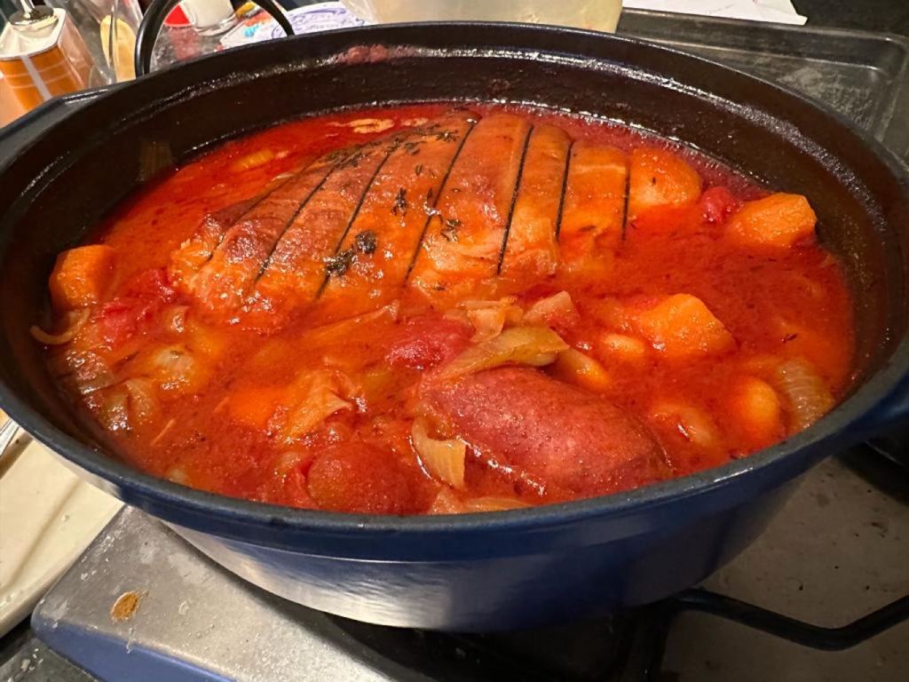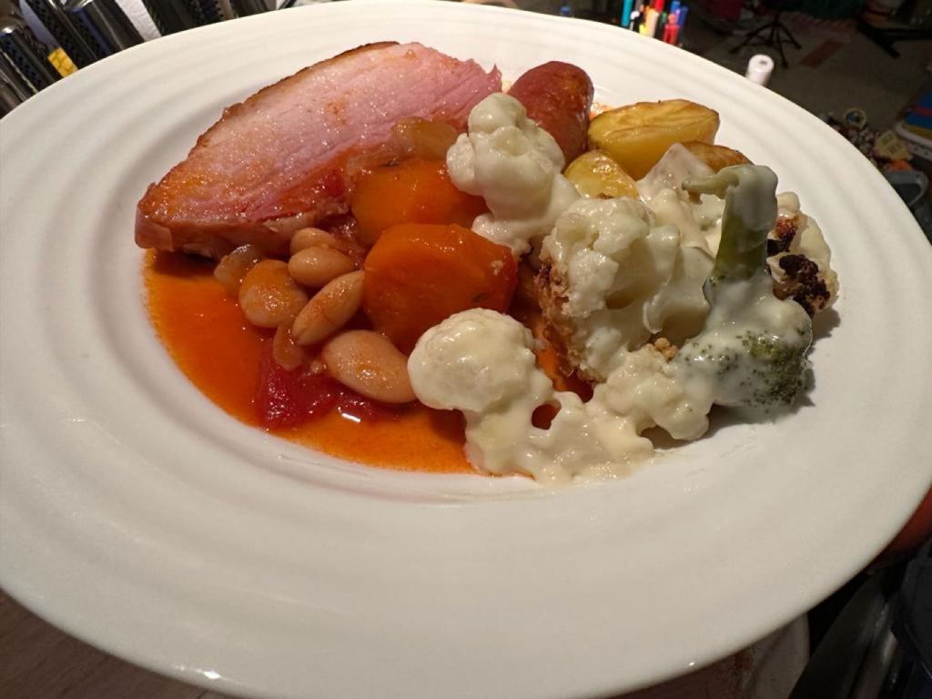 Our book was by The Kitchen Diaries by Nigel Slater. We cooked Ham and Butter Beans followed by English Apple Cake. The ham was a lovely warming affair with a tomatoey sauce, we served with Cauliflower cheese. The Apple cake looked great but, not unforgetable (at least not a few weeks later as I write this). Next up was a lovey Pork Ribs with Honey and Anise recipe. This was pretty straight forward and the two baby back ribs we got were perfect for the four of us to savor. Finally this week was Haddock with Bacon and Parsley. The smoked haddock and bacon work really well togther and this made a lovely mid week supper dish. I don’t think the little ones were mad on it. Nigel’s book two of the kitchen diaries is next week.
