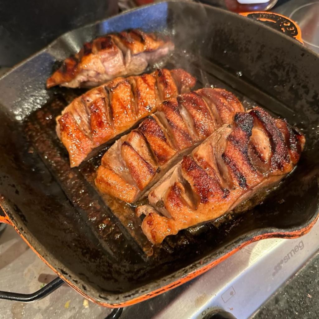 The Slater Strikes back! I do love this book and its predecessor. Sometimes when you are lacking ispiriation, its lovely to be able to open a book on the day of the year that you are at and get something that is likely in season and in Nigel’s case pretty likely to be delicious. The week started with the rather delicious Duck Breasts with Damson Gin and Duck-Fat Potatoes. A couple of cracking little recipes here. The duck was delicious (with sloe gin in our case), and the duck-fat potatoes really were like a big pommes anna – easy to do if you have a mandolin. Next up was Bacon wrapped salmon. The last two weeks have had fish wrapped in bacon. The smokiness of the bacon pairs well with a fish like salmon as you might expect I suppose. Next up was a decent Salmon Curry but nothing remarkable. Nigel’s chocolate and banana cake – the banana making a nice addition to a chocolate loaf. Next week, we’re with one of the legends of the cookbook world – Elizabeth David.