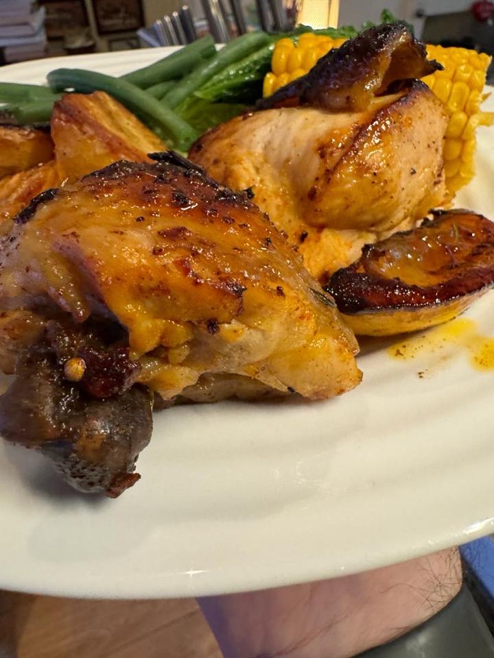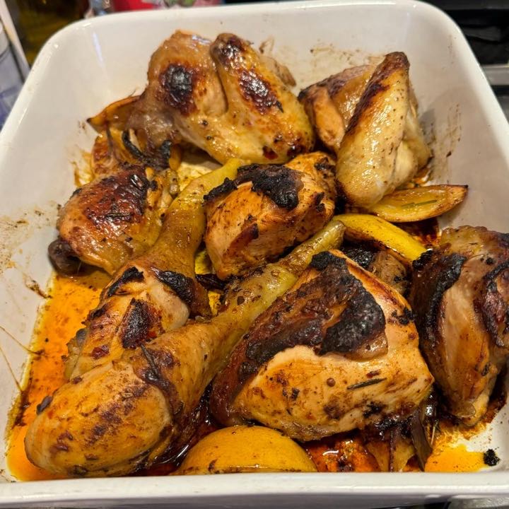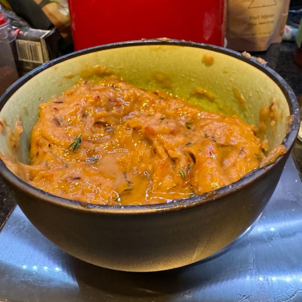 Next up was Maze, by Jason Atherton. Jason is a protege of Gordon Ramsay. Maze was the first (in my memory) of brining tapas style eating (small plates) to non spanish food – something that has definitely continued as a food trend long after Maze’s departure from the capital’s restaurant scene. Whilst the book can be a a little cheffy, if you look there are some really approachable recipes in here too. We only cooked a few this week. First up was Lemon and Garlic Roasted Chicken with Morrocan Spices. This was a delicious little number and very straight forward. Later in the week we had Baba Ganoush and Houmous with Pitas. I’m a huge fan of Baba Ganoush, though this version was a touch sweet so perhaps I’d do the recipe a little different next time. The Houmous was good but not really drastically different to our usual recipe.