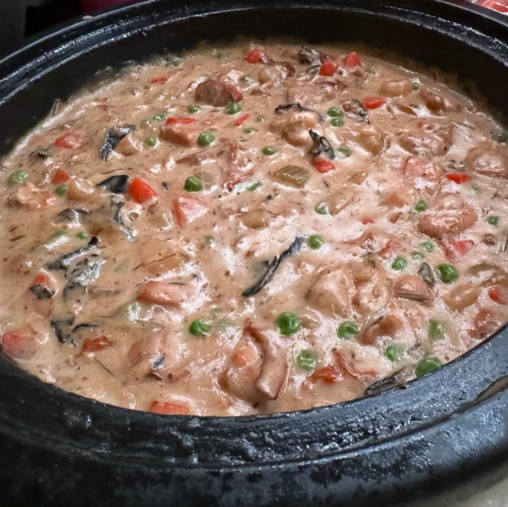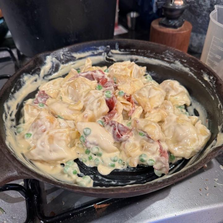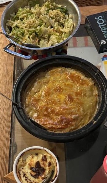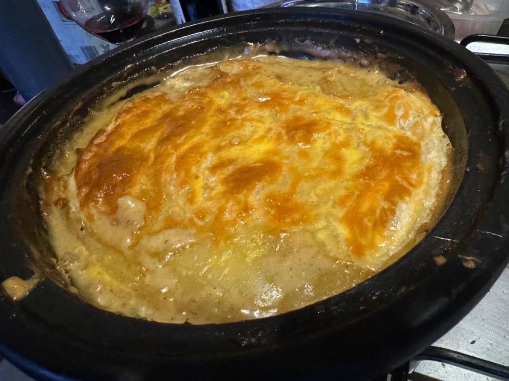 I got This little book for free when we bought our stand mixer (I think). It is a collection of recipes from Charitable Bookings Signature Dish USA. Its a compilation of recipes from restaurants across America compiled by David Johnstone. First up was Skillet Chicken Pot Pie. This is a great take on a chicken pie. I think the fact that it is made in just one skillet is really appealing. The pie was delicious and looked great. The recipe is submitted by Benjamin Riggs from the Salish Lodge and Spa, which I think is just outside Seattle. Next up was Tortellini di vitello from Michael Annandono of Michaelangelos in Cleveland. This was a creamy pasta recipe which made a nice mid-week change from our stalwart, which is Pasta Carbonara. Lovely flavours of sage and Proscuitto. A nice little book that hasn’t really be used before and the chicken pot pie will be something we go back to.