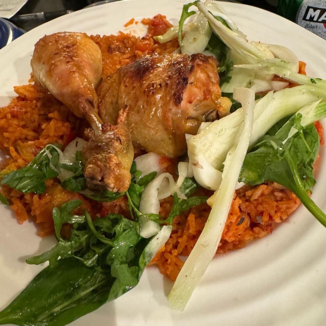 Next up was The RAF 100 Cookbook by Flight Lieutenant Crispin Chapple and Squadron Leader Jon Mullen. This book was released to celebrate 100 years of the RAF and is arranged sort of chronologically by country where the RAF have been involved in global conflicts. Whilst this might be a little unusual approach to take with cookbook organisation (doesn’t necessarily make it easy to find a recipe) it does give you the opportunity to try recipes from countries that are pretty diverse. First up was a Palestinian dish called Mansaf which is Braised Lamb in Yoghurt. This was delicious with a a touch of acid from the yoghurt that was wonderful with the sweetness of the lamb. We used shoulder and boned it but left the bones in with the lamb pieces when we cooked it. It was really flavoursome. We followed that with the quite wonderful Dutch Apple Crumble Tart. This tart was amazing and ranks up with Mrs B’s incredible tarte Tatin. Its definitely one to do again, perhaps with a creme anglaise. We then attempted Geurnésiais Gâche (Guernsey Fruit Loaf). This was a light fruit loaf. It was great toasted and buttered for breakfast. Our last recipe of the week came from Nigeria – Jollof Rice with Chicken. A great dinner. We used the full strength of chili for us and none with the little ones. Everyone liked it. It needs more seasoning when the chicken goes in the oven, It was delicious and delightfully spiced. All in all a great cookbook that could well have resided on the shelves unloved were it not for this weekly cooking exercise which woul dhave been a real shame.