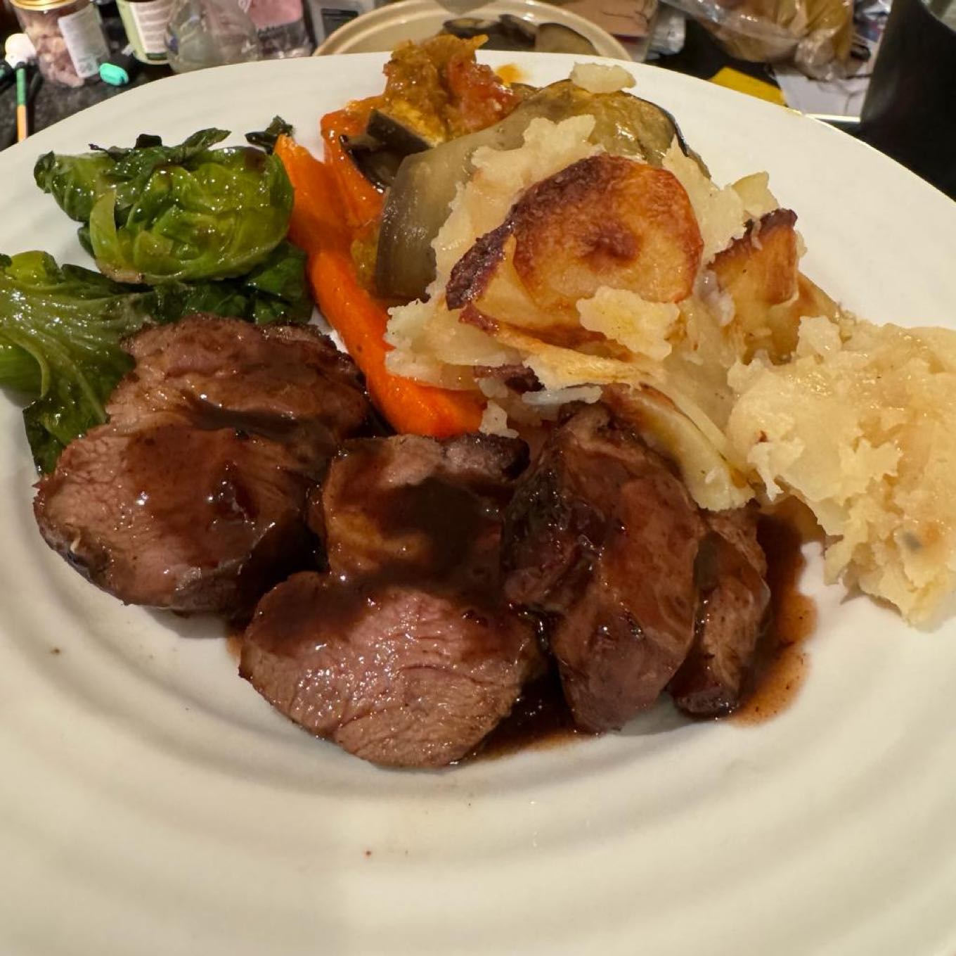 Fillet of Lamb with a Spiced Aubergine Charlotte. The charlotte was delicious with the lamb and looked really rather spectacular.